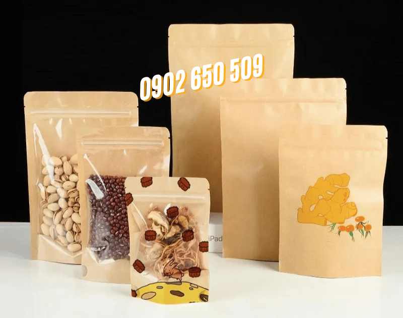 • Linh hoạt tùy chỉnh: Có sẵn nhiều kiểu dáng như túi zip giấy có cửa sổ, túi 8 cạnh, hoặc túi 1 mặt trong suốt, đáp ứng mọi nhu cầu đóng gói từ thực phẩm đến các sản phẩm cao cấp khác.