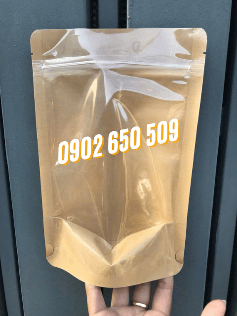 Túi zip giấy kraft đáy đứng một mặt trong suốt, một mặt giấy kraft mang đến giải pháp bao bì tinh tế, giúp trưng bày sản phẩm một cách nổi bật và thu hút. Với thiết kế thông minh, túi cho phép khách hàng dễ dàng quan sát sản phẩm bên trong, lý tưởng để bảo quản các sản phẩm cao cấp như hạt khô, trái cây sấy, bánh kẹo thủ công, cà phê, hoặc tùy theo nhu cầu sử dụng. Sản phẩm không chỉ nâng cao tính thẩm mỹ mà còn tạo ấn tượng mạnh mẽ, thu hút sự chú ý của khách hàng.