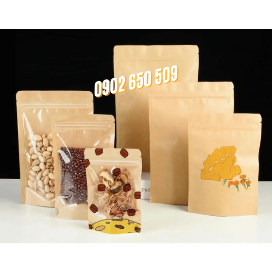 • Linh hoạt tùy chỉnh: Có sẵn nhiều kiểu dáng như túi zip giấy có cửa sổ, túi 8 cạnh, hoặc túi 1 mặt trong suốt, đáp ứng mọi nhu cầu đóng gói từ thực phẩm đến các sản phẩm cao cấp khác.